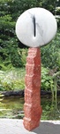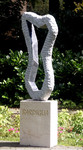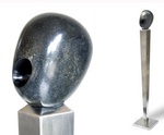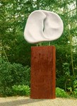 2012Twee abstacte figuren, een positief de ander negatief, in staal- en roestvast staalplaat op sokkel van graniet